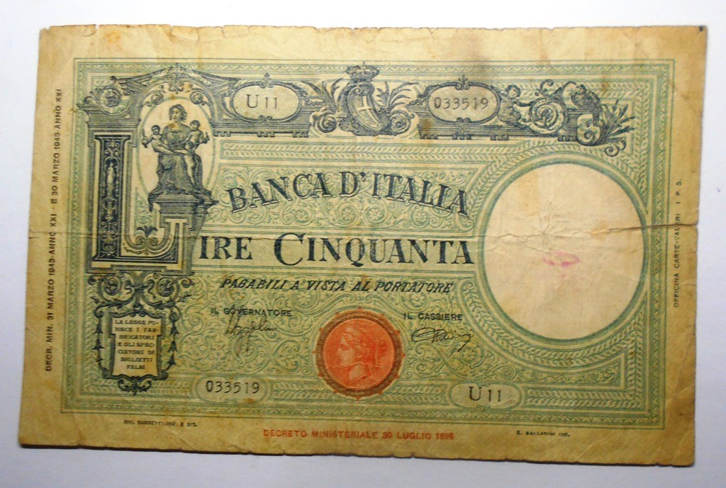 50 Lire GRANDE L 31.03.1943