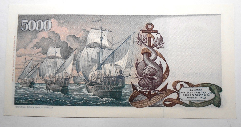 5000 Lire 1971 COLOMBO 3 CARAVELLE