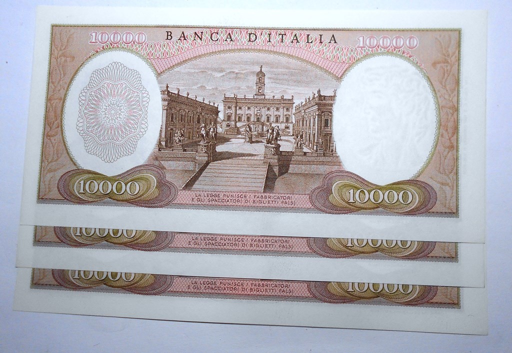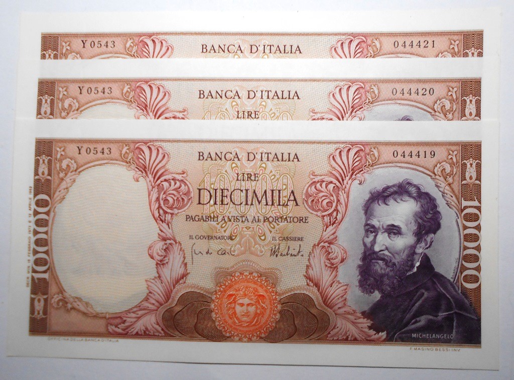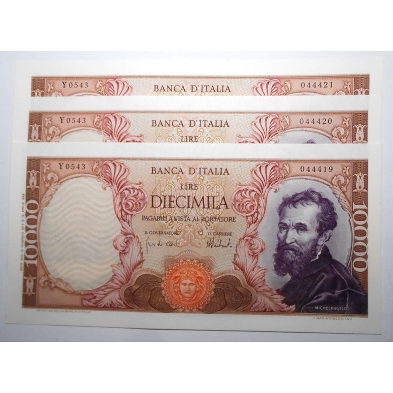 10.000 Lire Michelangelo 1973 Lotto n. 3 banconote da mazzetta FDS