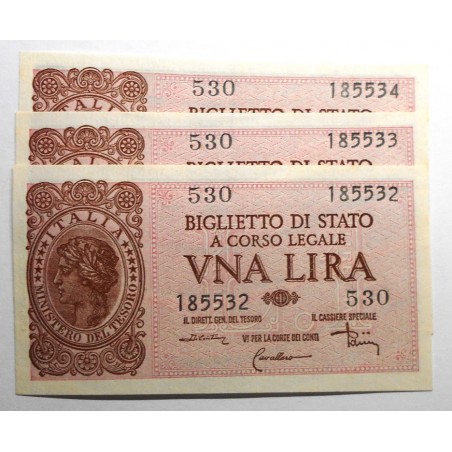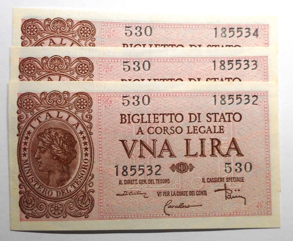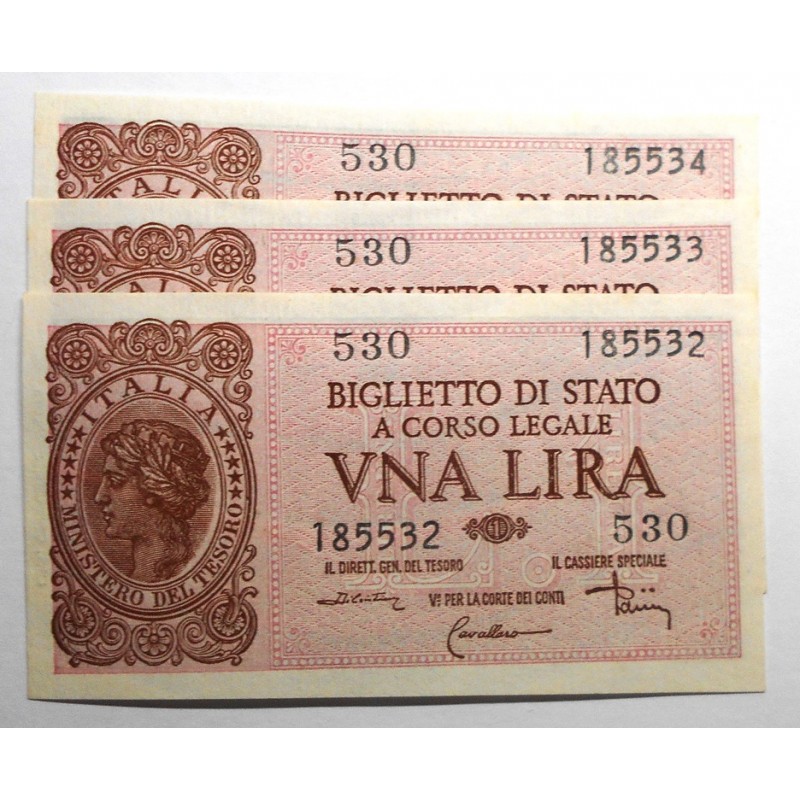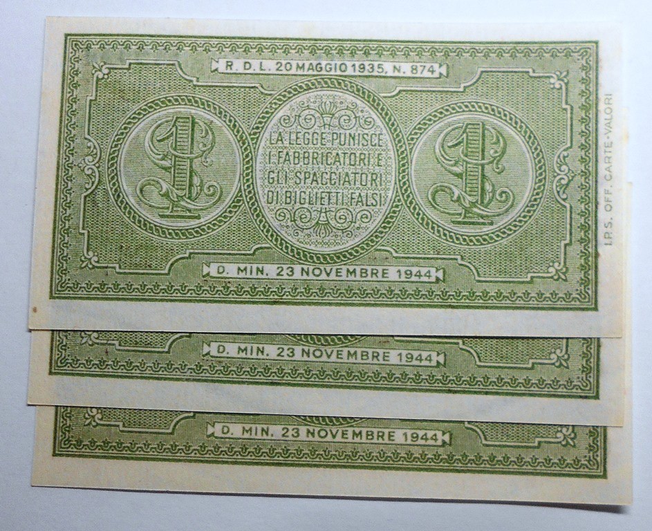 1 Lira 23.11.1944 Di Cristina Lotto 3 banconote da mazzetta FDS