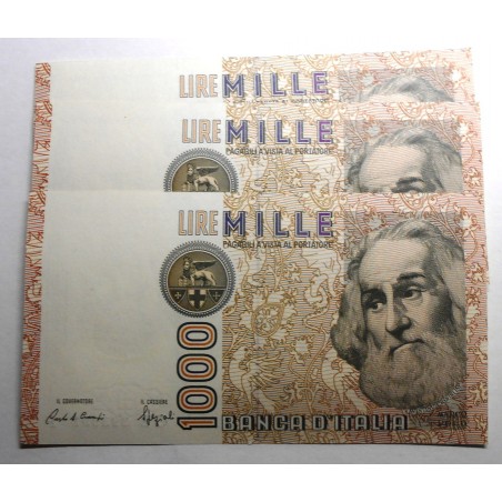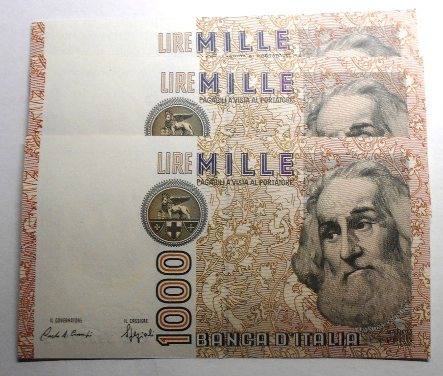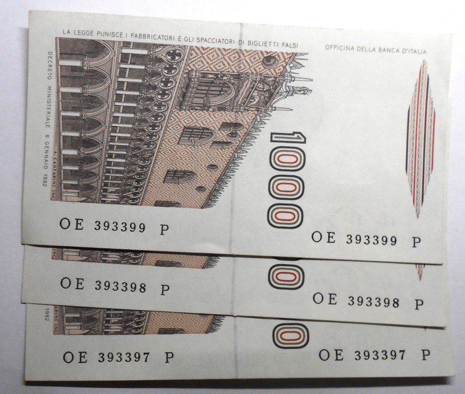 1000 Lire Marco Polo Lettera E Filo di Sicurezza modificato Lotto n.3 banconote da mazzetta FDS
