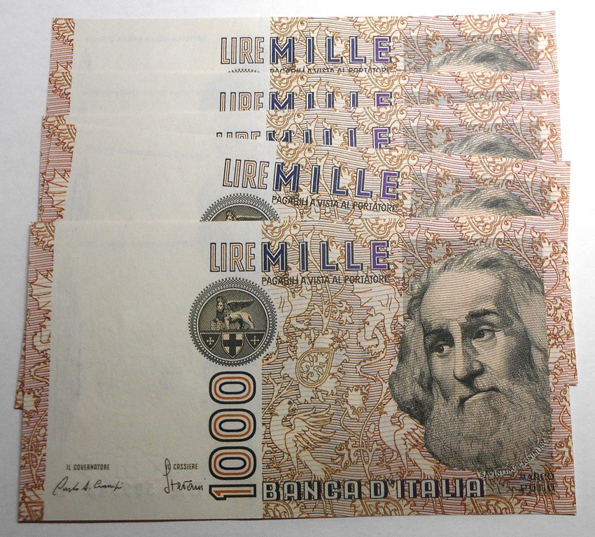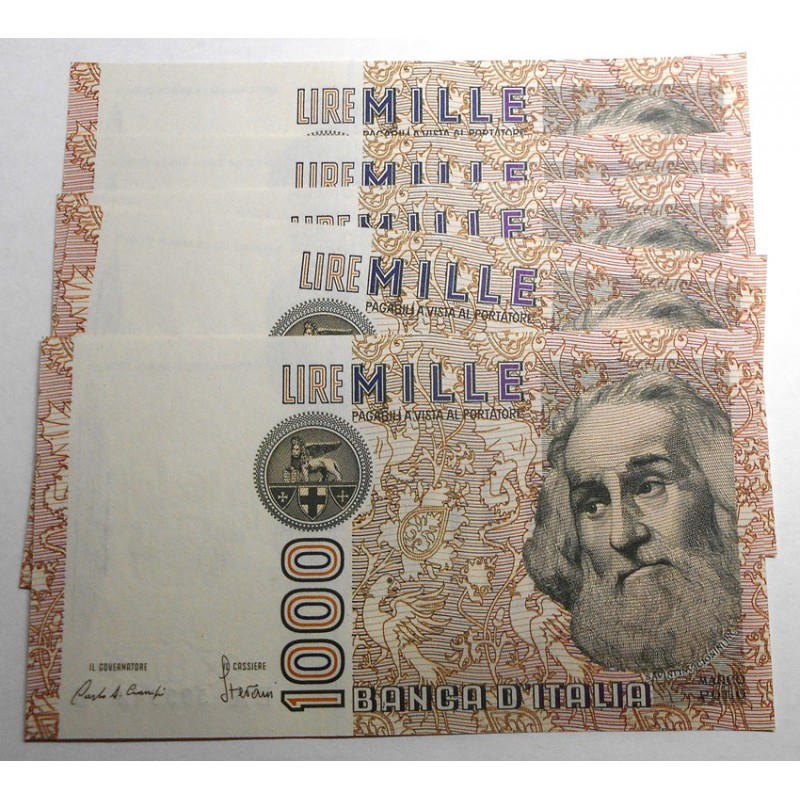 1000 Lire Marco Polo Lettera A Lotto n.5 banconote da mazzetta FDS