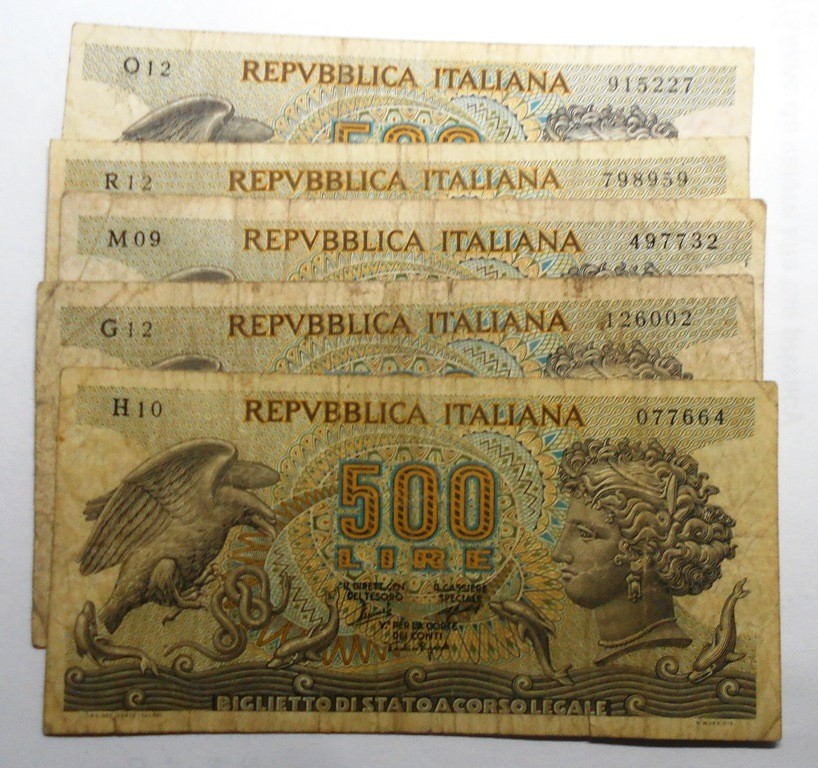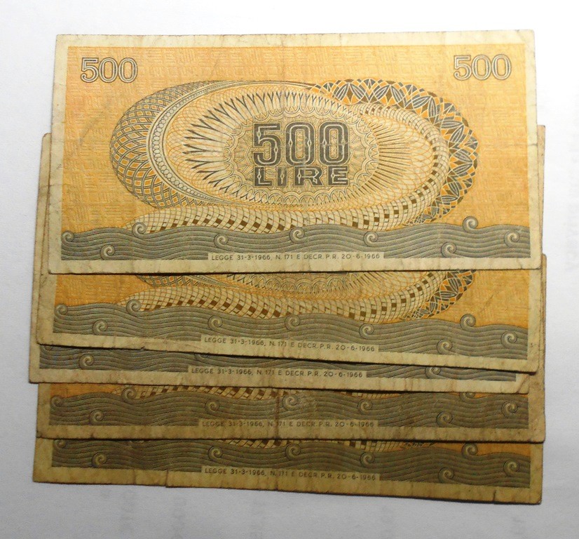 500 Lire ARETUSA 1966 Lotto n. 5 banconote MB