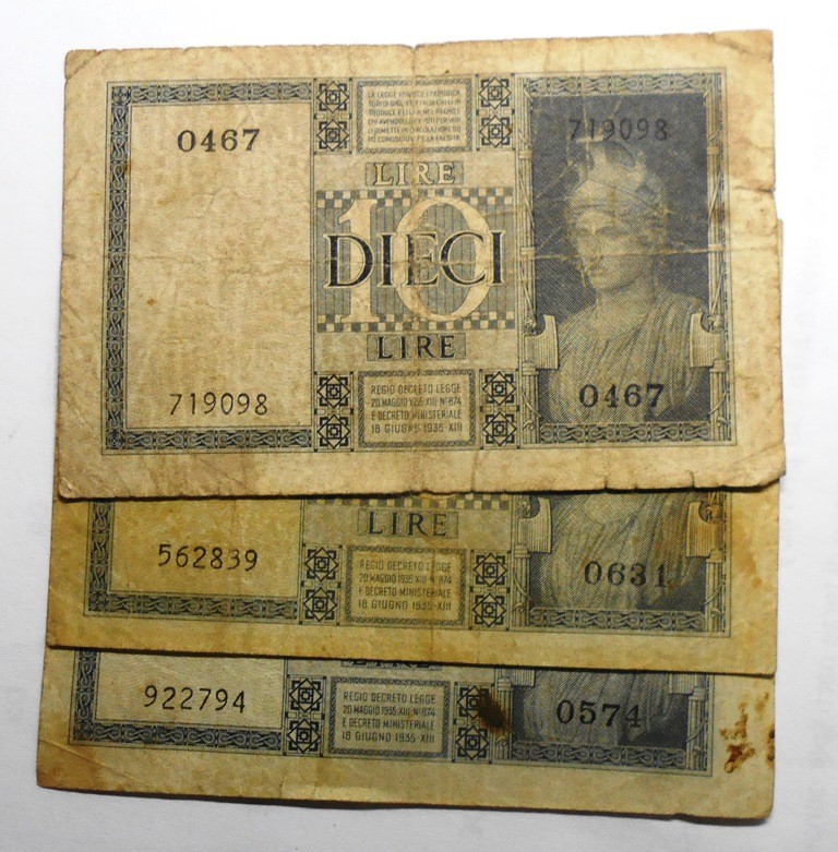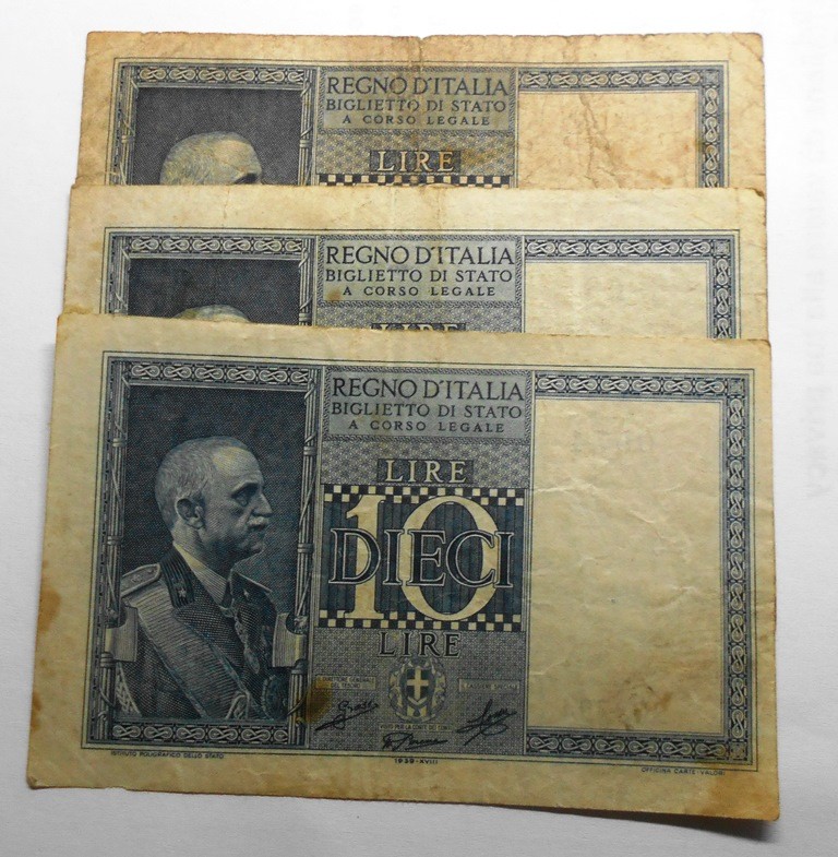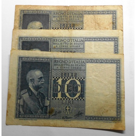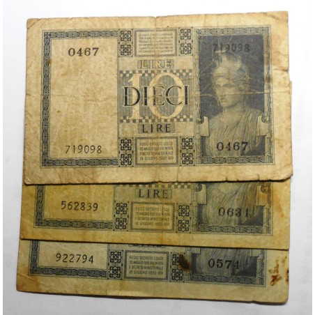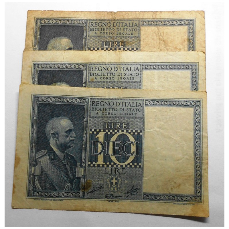10 Lire 1939 / XVIII Dittatura Fascista Lotto n.3 banconote BB
