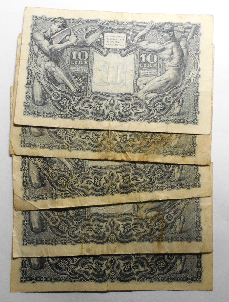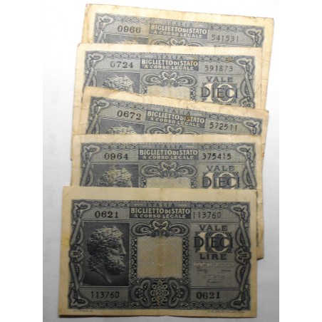 10 Lire 1944 Luogotenenza Bolaffi/Cavallaro/Giovinco Lotto n.5 Banconote BB