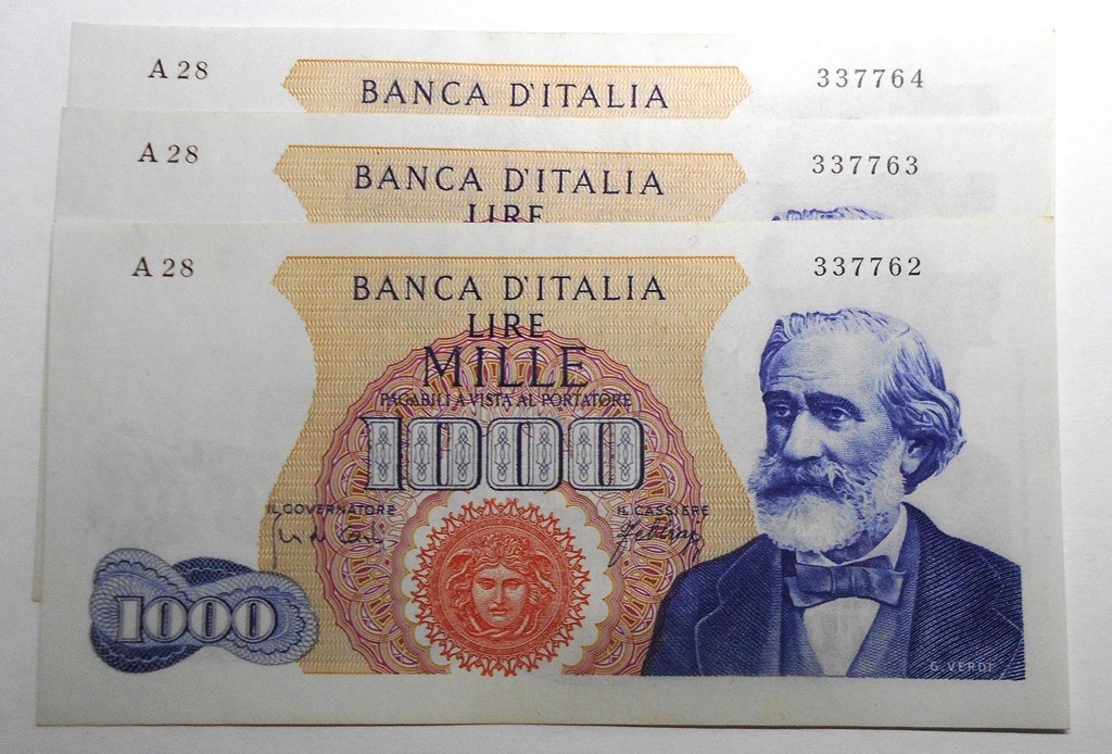 1000 Lire VERDI 1965 Lotto n.3 Banconote q.FDS