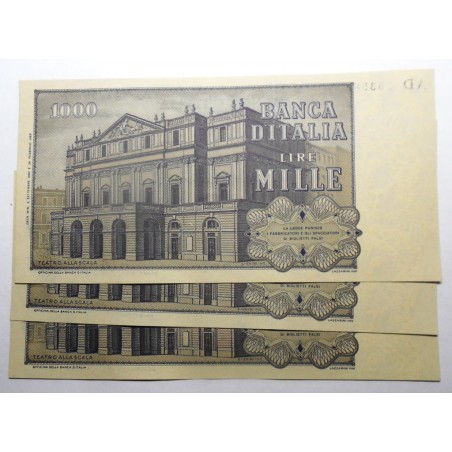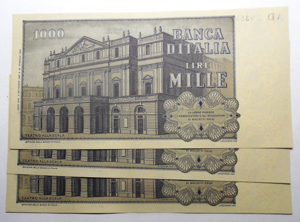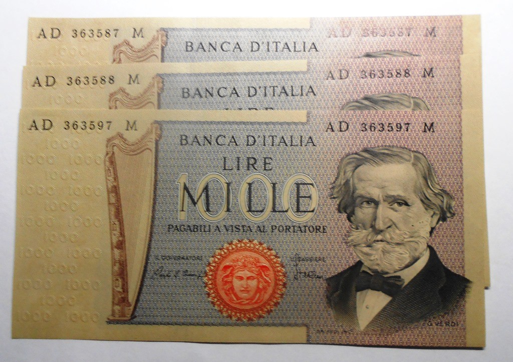 1000 Lire Verdi 06.09.1980 n.3 banconote da mazzetta