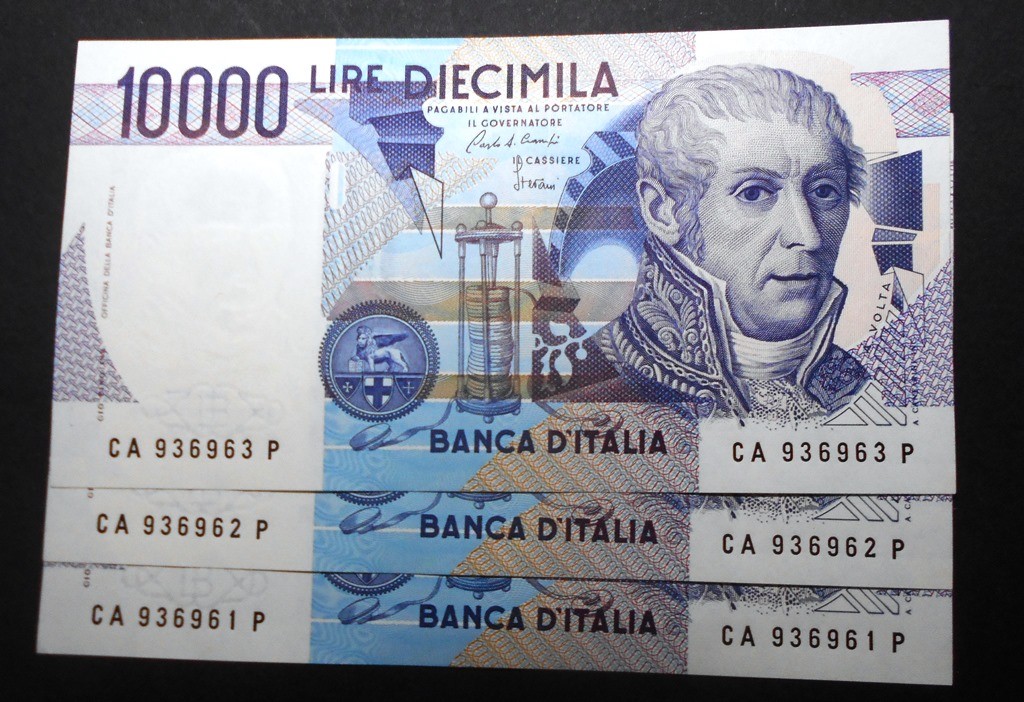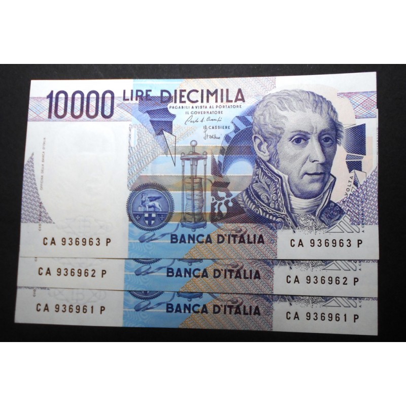 10.000 Lire Volta 1984 Lettera A n. 3 banconote da mazzetta FDS