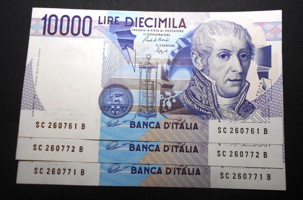 10.000 Lire Volta 1984 Lettera C n. 3 banconote da mazzetta FDS