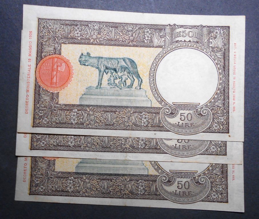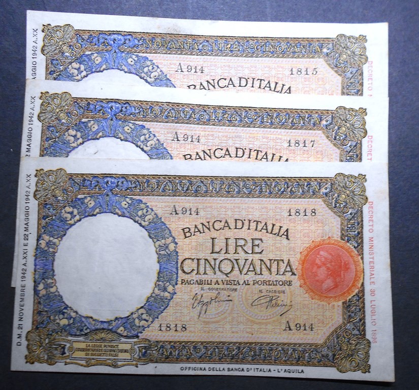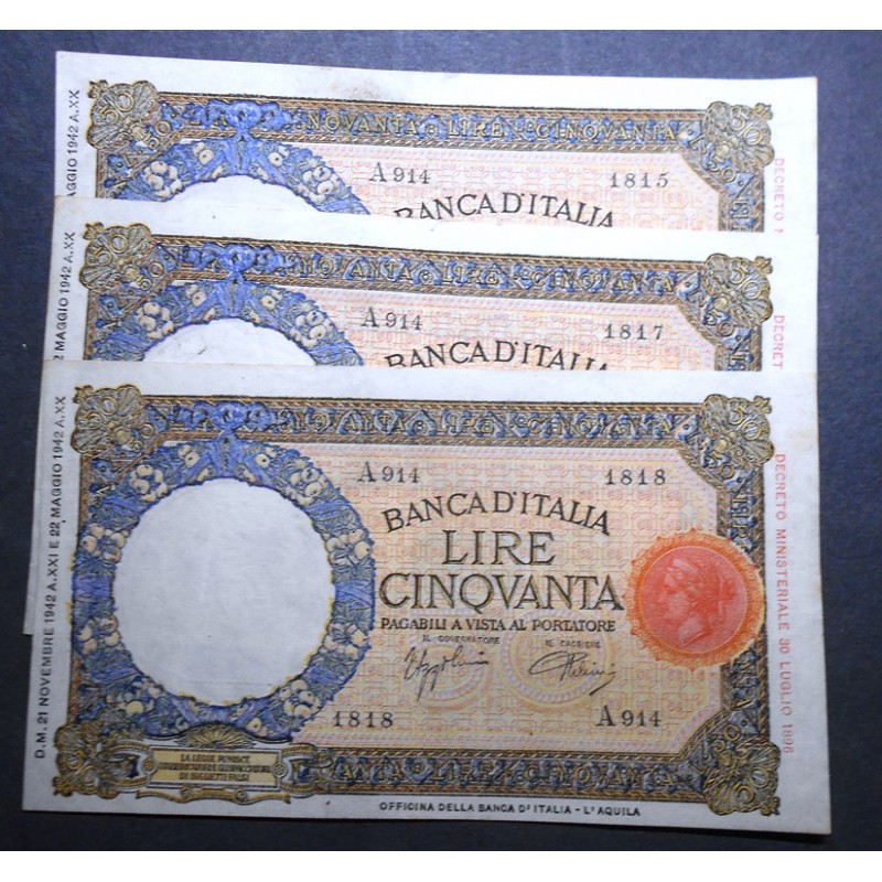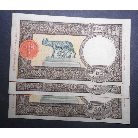 50 Lire Lupa Capitolina (L'Aquila) 21.11.1942 Lotto n.3 Banconote da mazzetta SPL