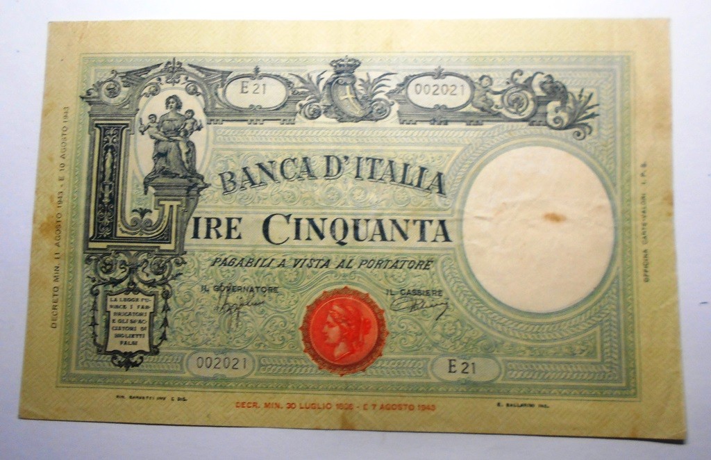 La banconota, garantita autentica, sarà consegnata con certificato peritale
