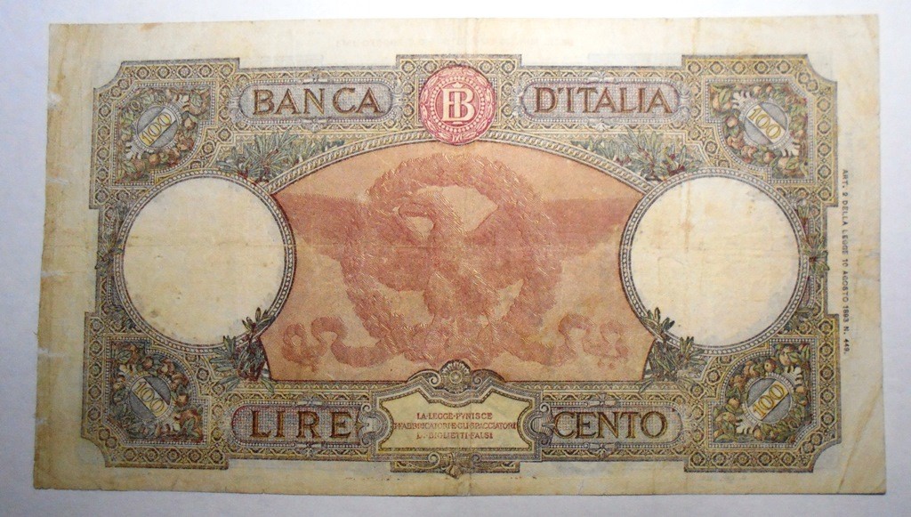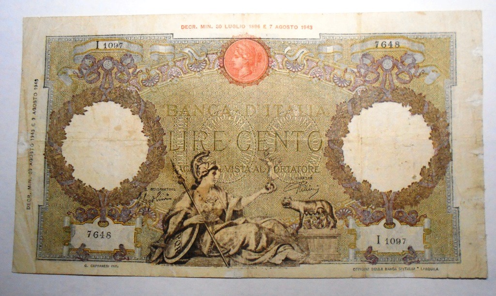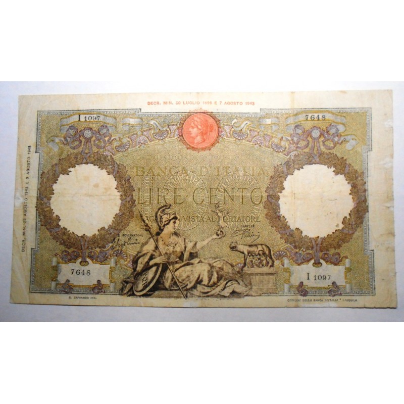 100 Lire Aquila Romana 23.8.1943 L'AQUILA