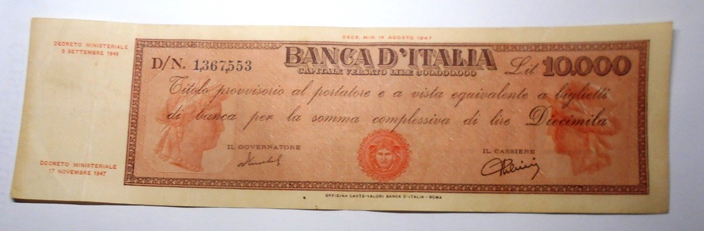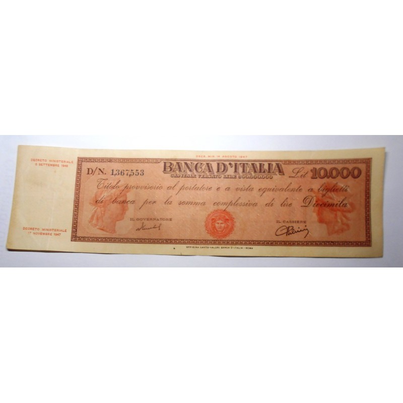 10.000 Lire TITOLO PROVVISORIO 6.9.1949