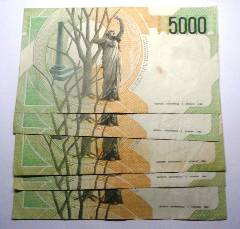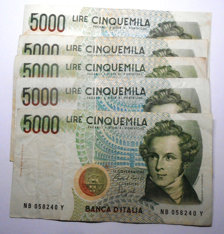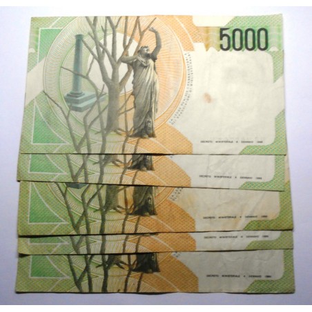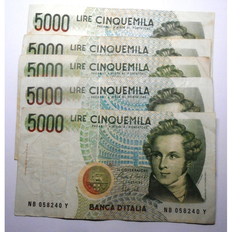 5000 Lire Bellini 1985 (1988) Lotto n.5 Banconote Lettera B