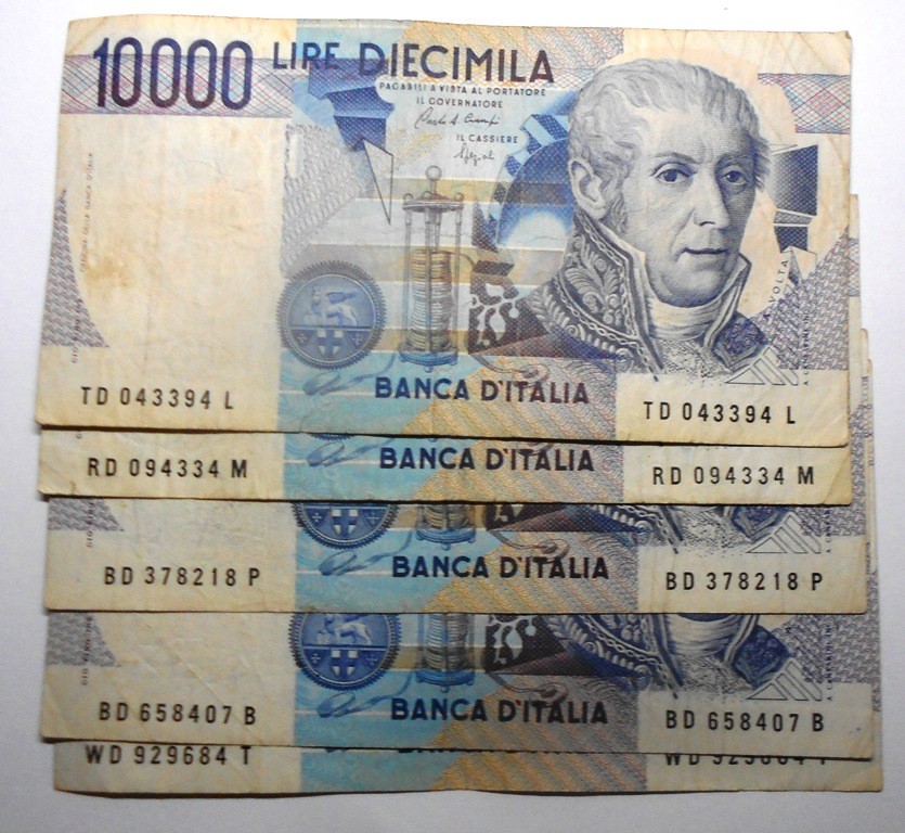 10.000 Lire Volta 1984 Lettera D Lotto n. 5 banconote BB