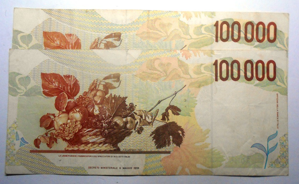100.000 Lire Caravaggio 2° Tipo Lett. D
