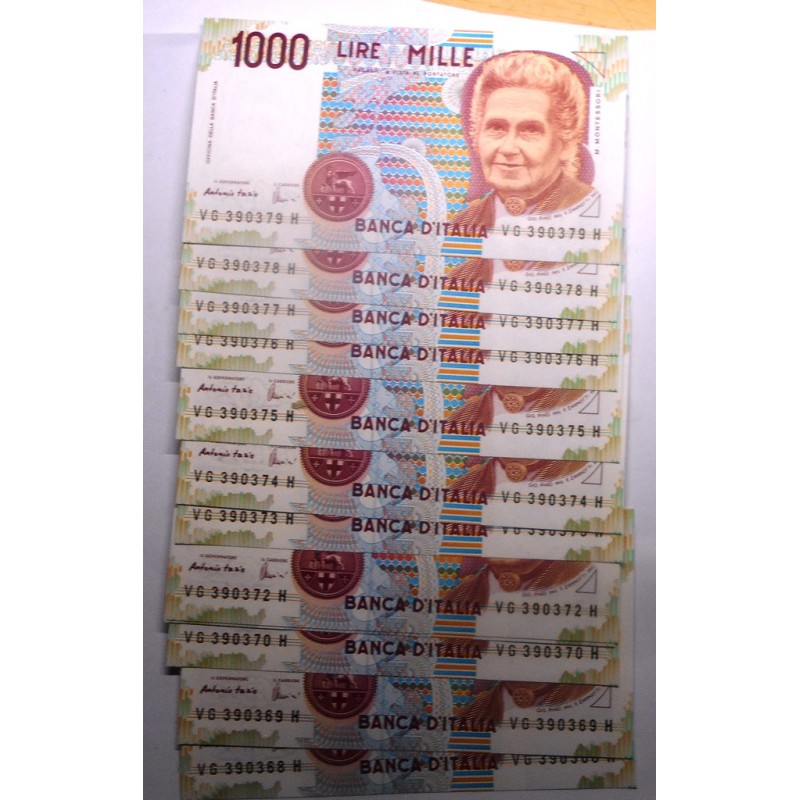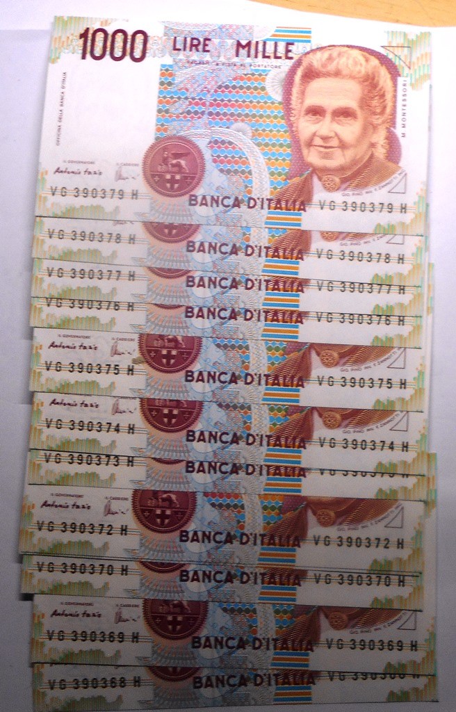 1000 Lire Montessori 1990 Lett. G Lotto n.10 banconote da mazzetta FDS