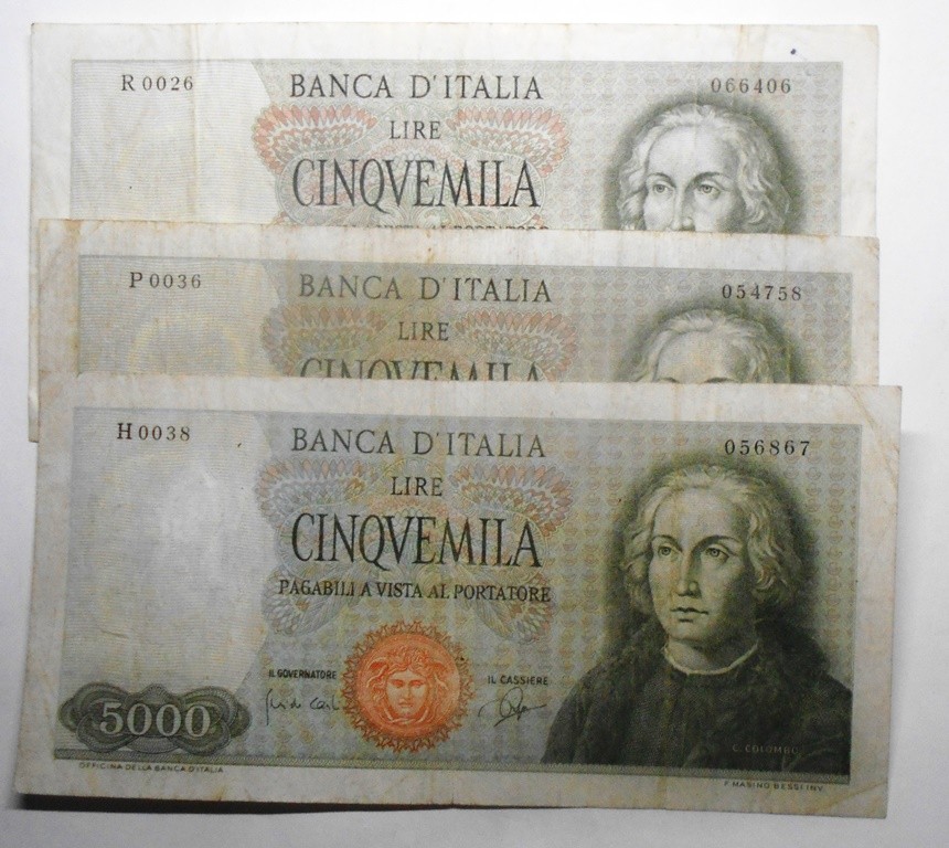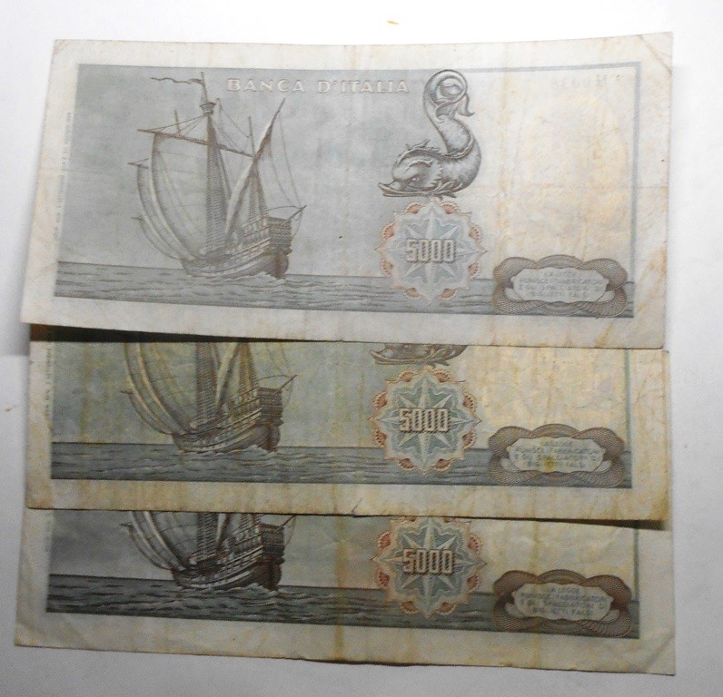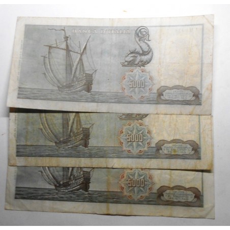 5000 Lire 1964 COLOMBO 1 CARAVELLA Lotto n.3 banconote BB