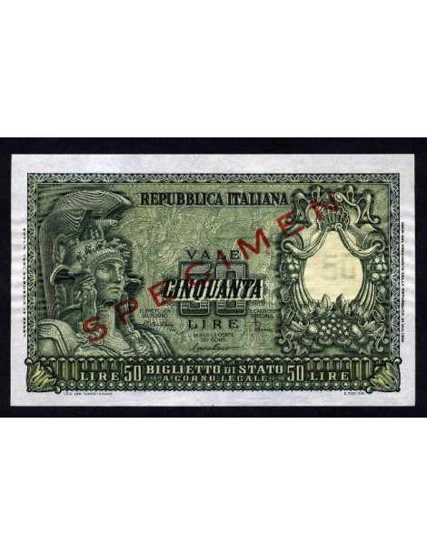 ITALIA 50 Lire ITALIA ELMATA 31.12.1951 SPECIMEN