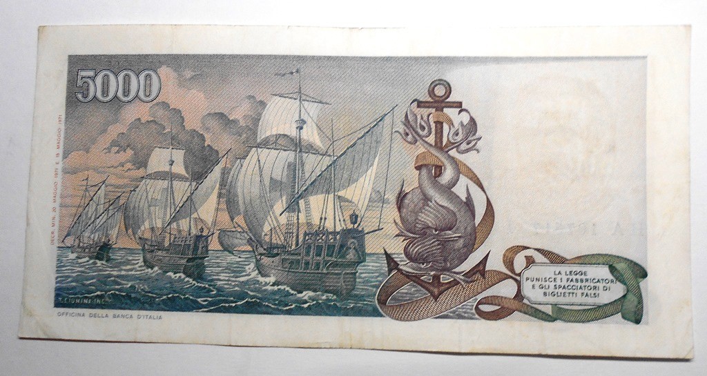 5000 Lire 1971 COLOMBO 3 CARAVELLE