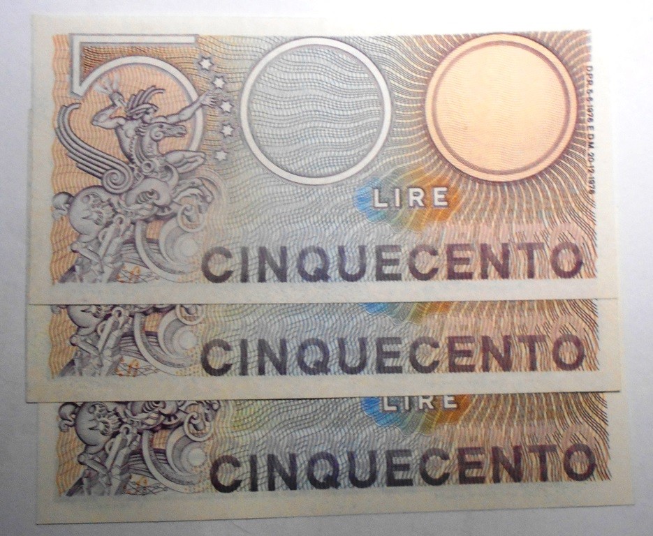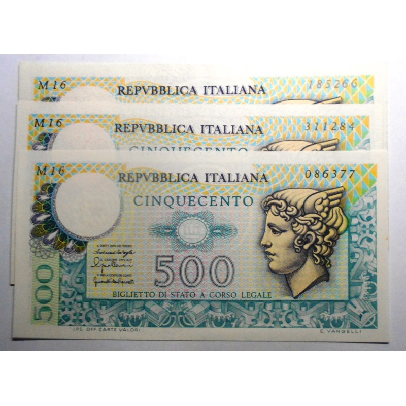 500 Lire Mercurio 1976 Lotto n.3 banconote da mazzetta FDS