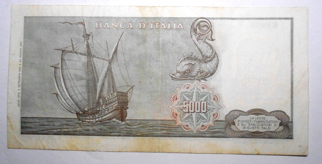 5000 Lire 1964 COLOMBO 1 CARAVELLA