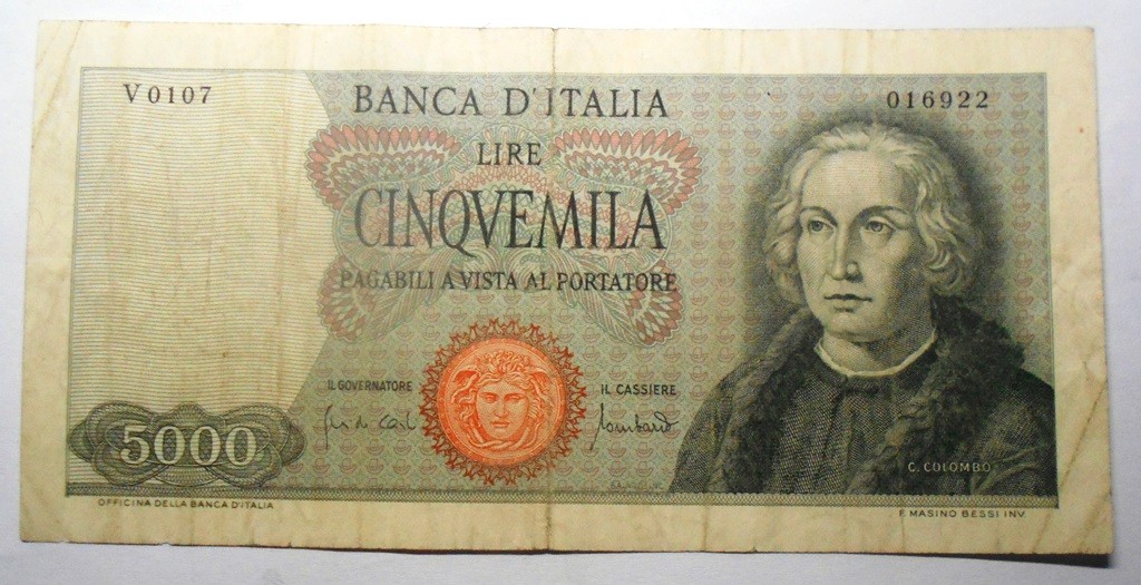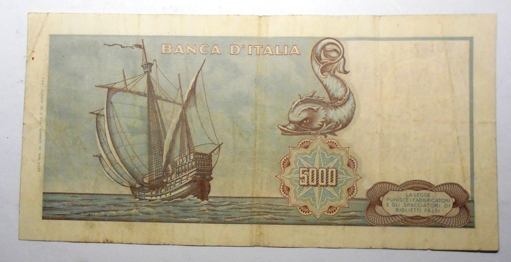5000 Lire 1970 COLOMBO 1 CARAVELLA