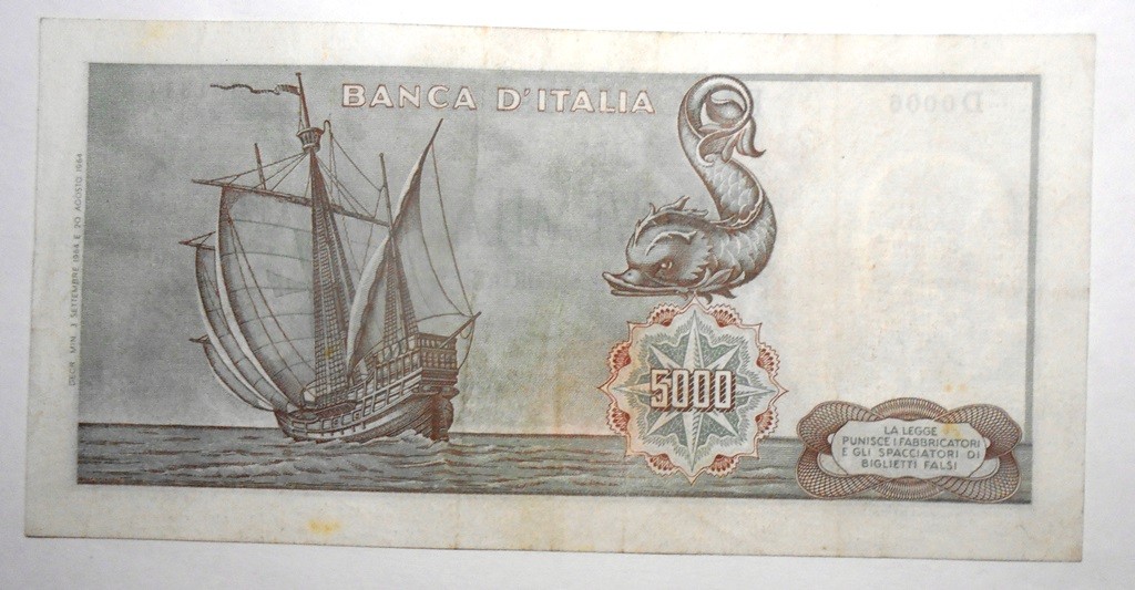 5000 Lire 1964 COLOMBO 1 CARAVELLA