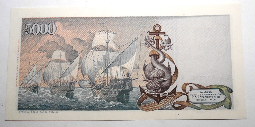 5000 Lire 1973 COLOMBO 3 CARAVELLE