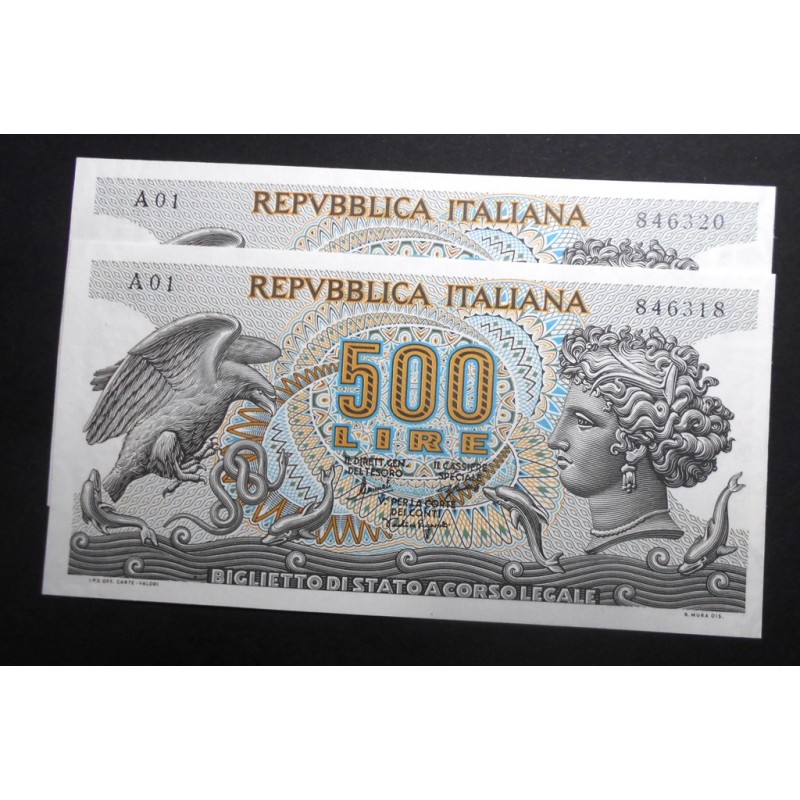 500 Lire ARETUSA 1966 serie A01 rara FDS