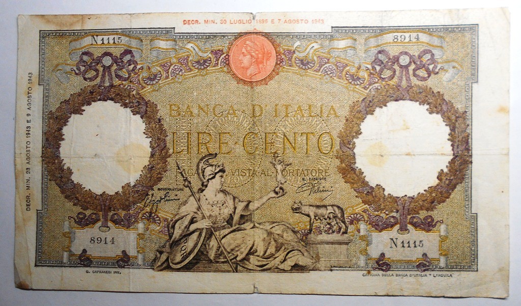 100 Lire Aquila Romana 23.8.1943 L'AQUILA
