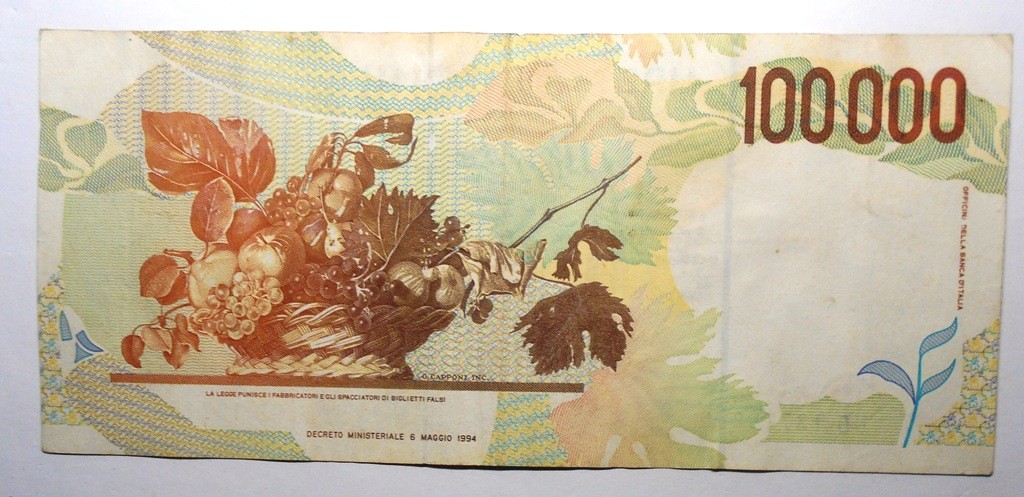 100.000 Lire Caravaggio 2° Tipo Lett. D