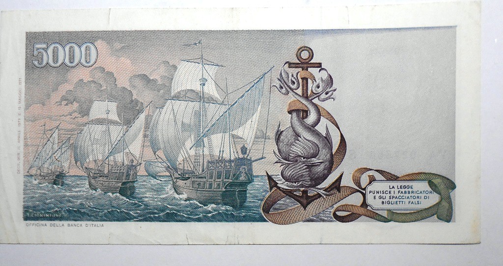 5000 Lire 1973 COLOMBO 3 CARAVELLE