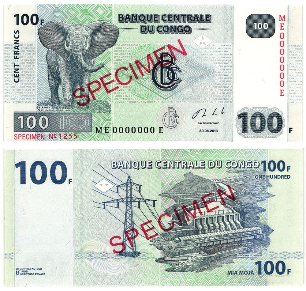 CONGO DEMOCRATIC 100 Francs 2013 (G&D) SPECIMEN