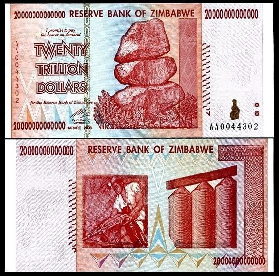 ZIMBABWE 20 Trillion Dollars 2008