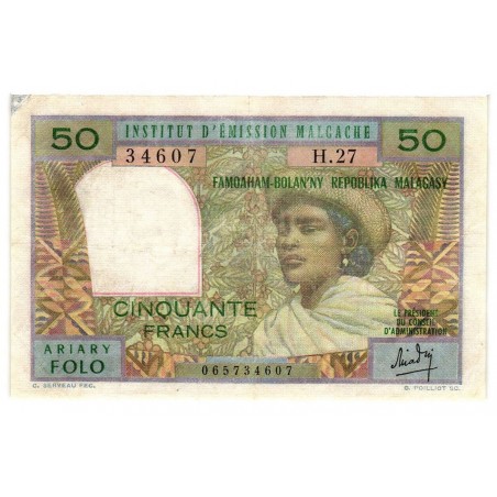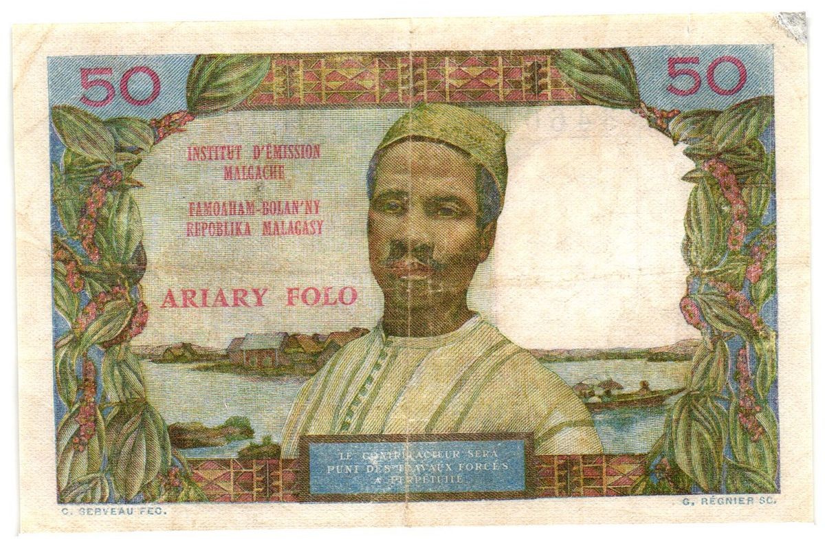 MADAGASCAR 50 Francs - 10 Ariary 1969 (Repaired)