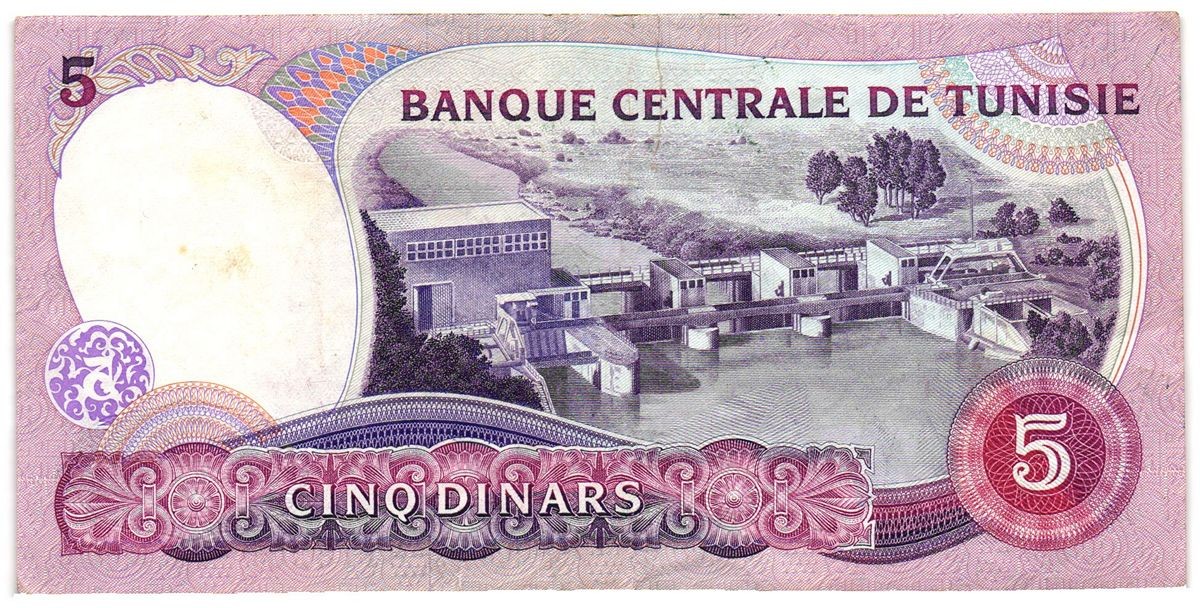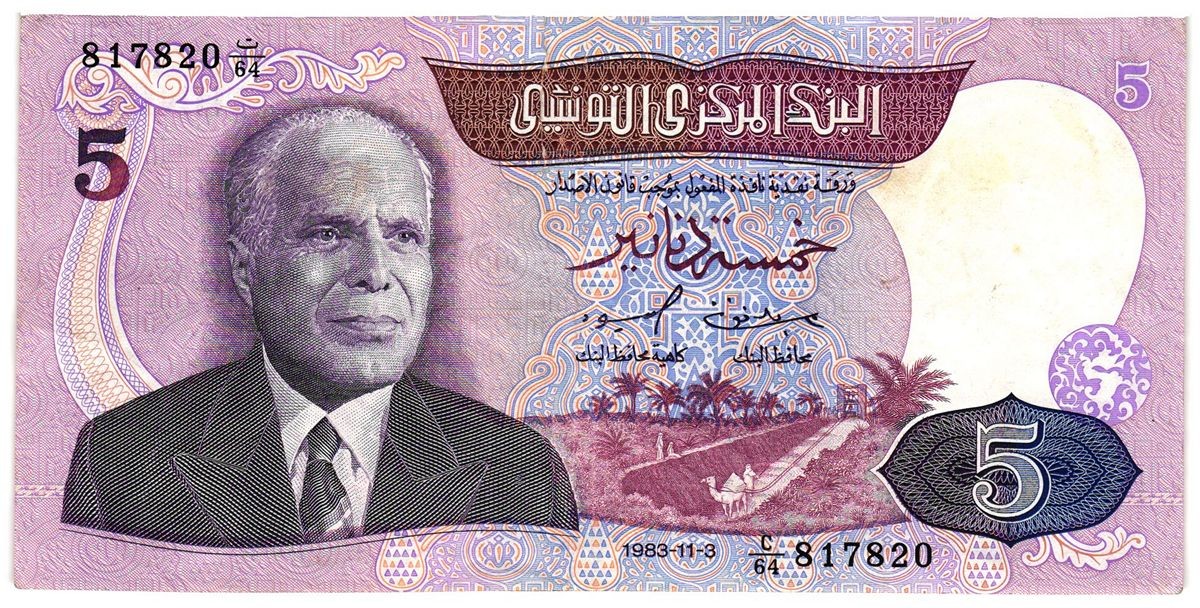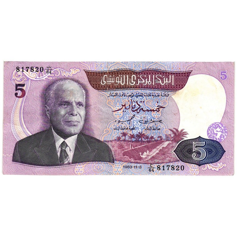 TUNISIA 5 Dinars 1983 (Cut 2cm on top)