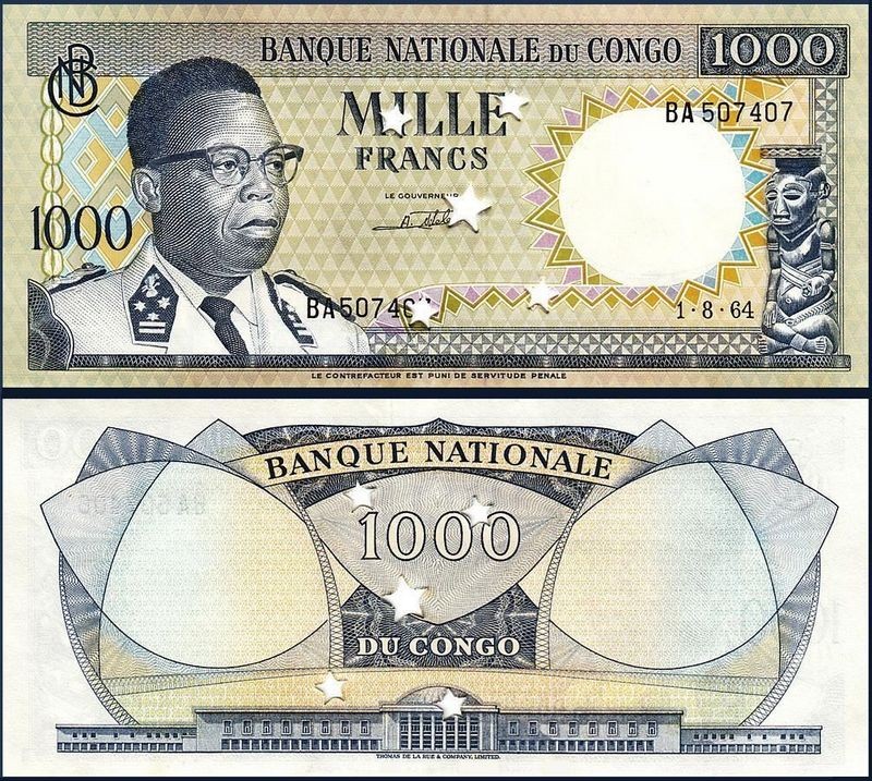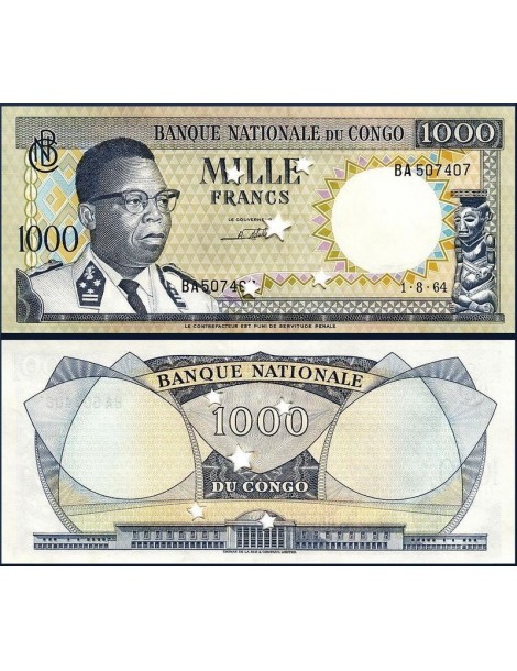 CONGO DEMOCRATIC 1000 Francs 1964 Cancelled