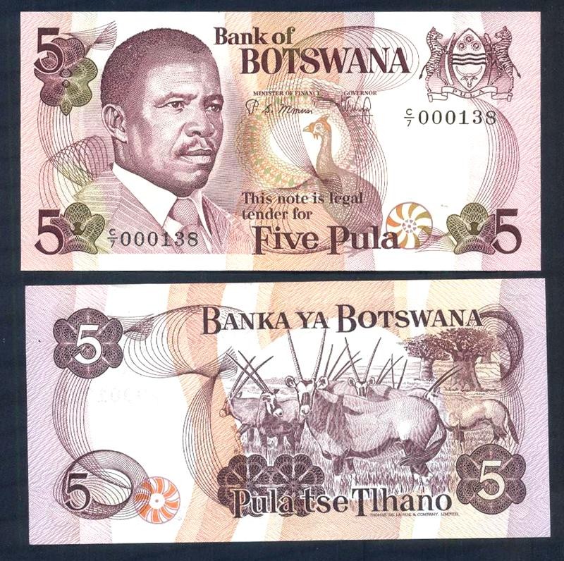 BOTSWANA 5 Pula 1982 Low Serial