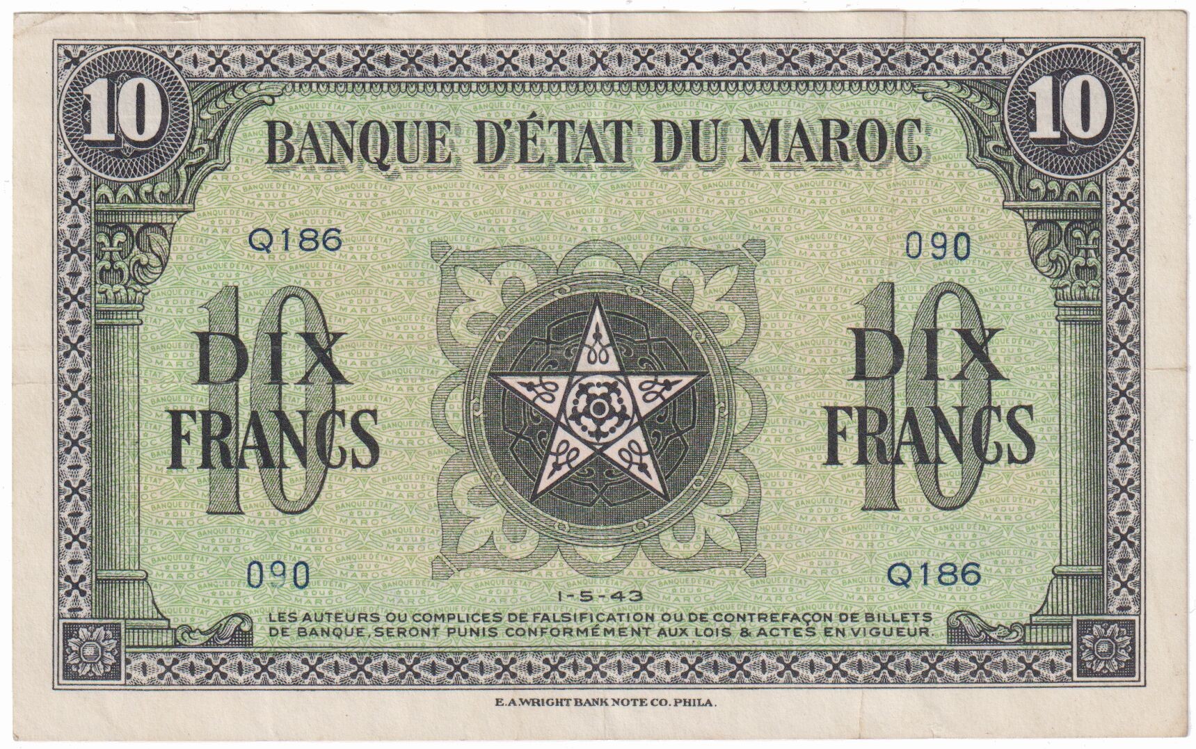 MOROCCO 10 Francs 01.05.1943