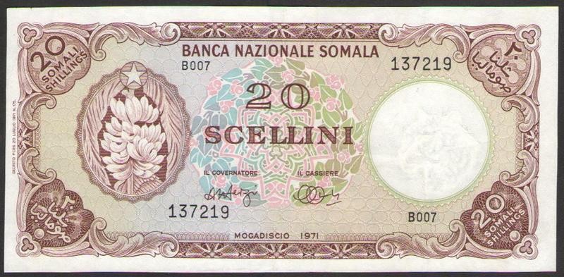 SOMALIA 20 Scellini 1971