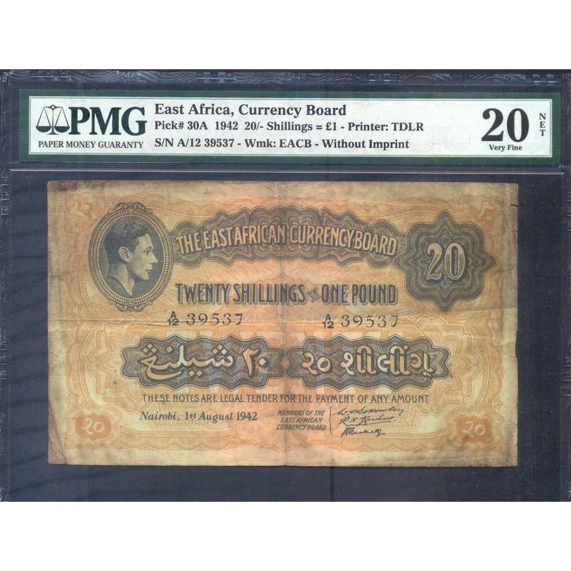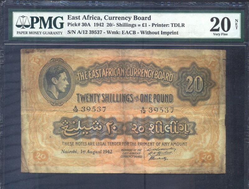 EAST AFRICA 20 Shillings - 1 Pound 1942 PMG