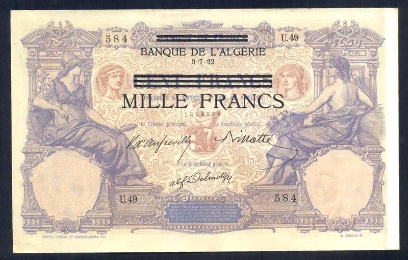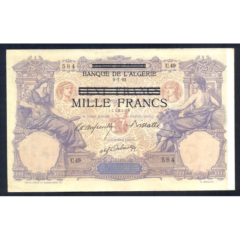 TUNISIA 1000 Francs 09.07.1892 (1942)