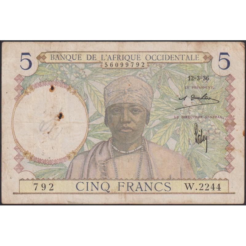 FRENCH WEST AFRICA 5 Francs 12.03.1936