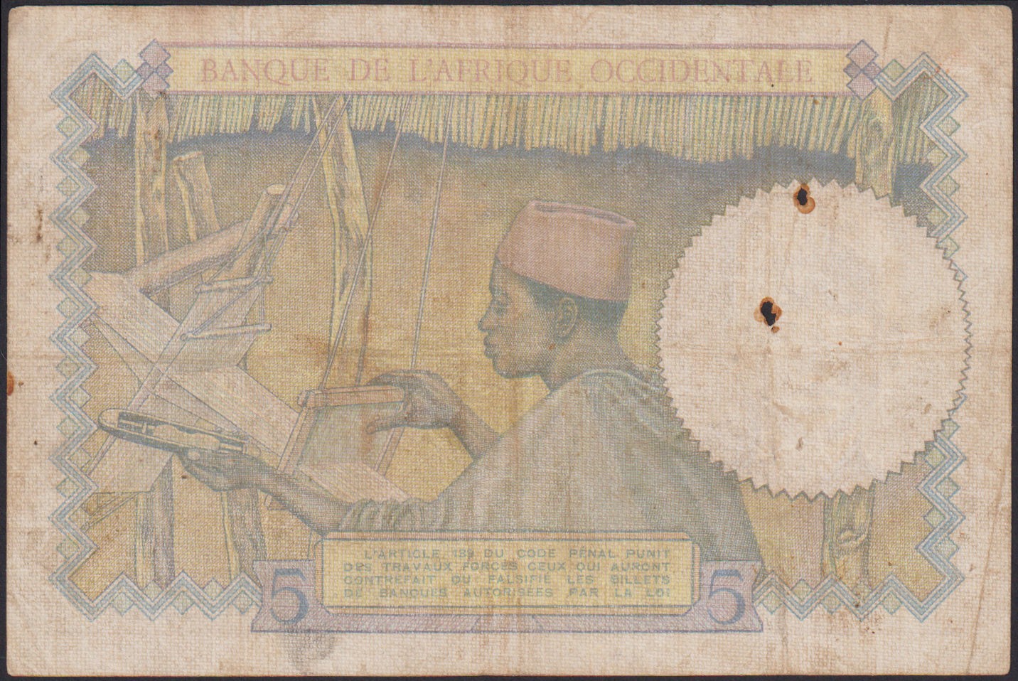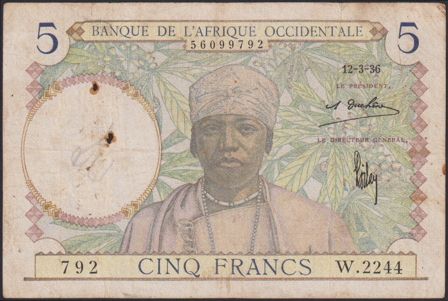 4. FRENCH WEST AFRICA 5 Francs 12.03.1936