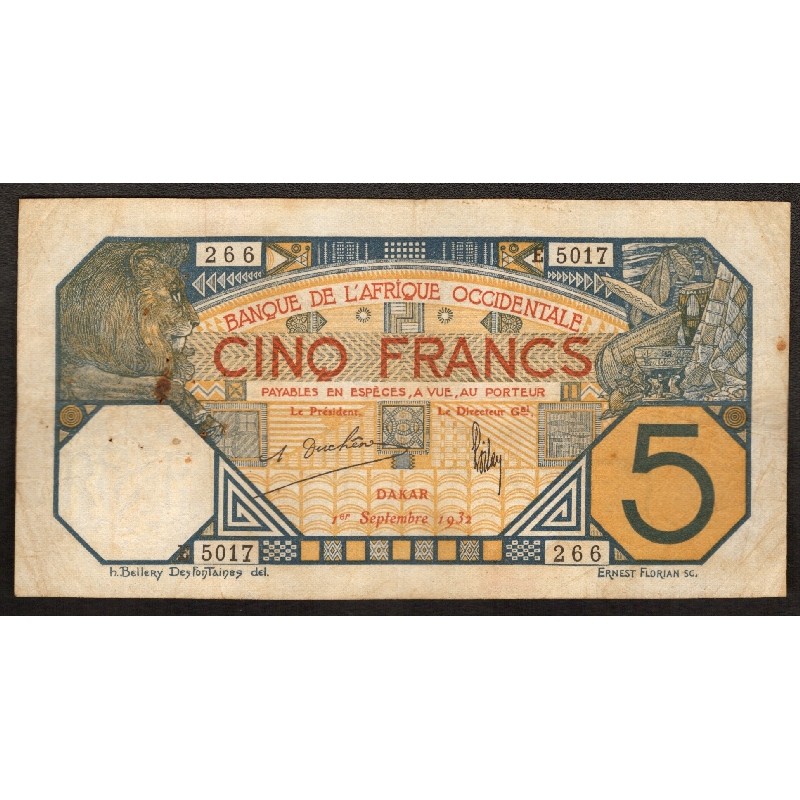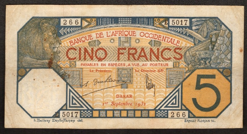 FRENCH WEST AFRICA 5 Francs 1932