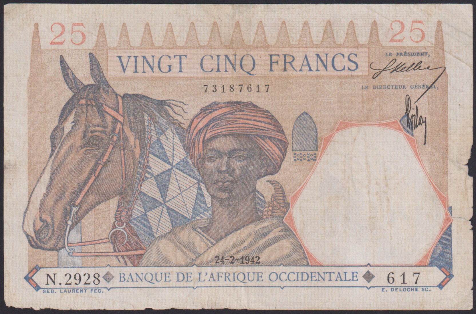 FRENCH WEST AFRICA 25 Francs 24.02.1942