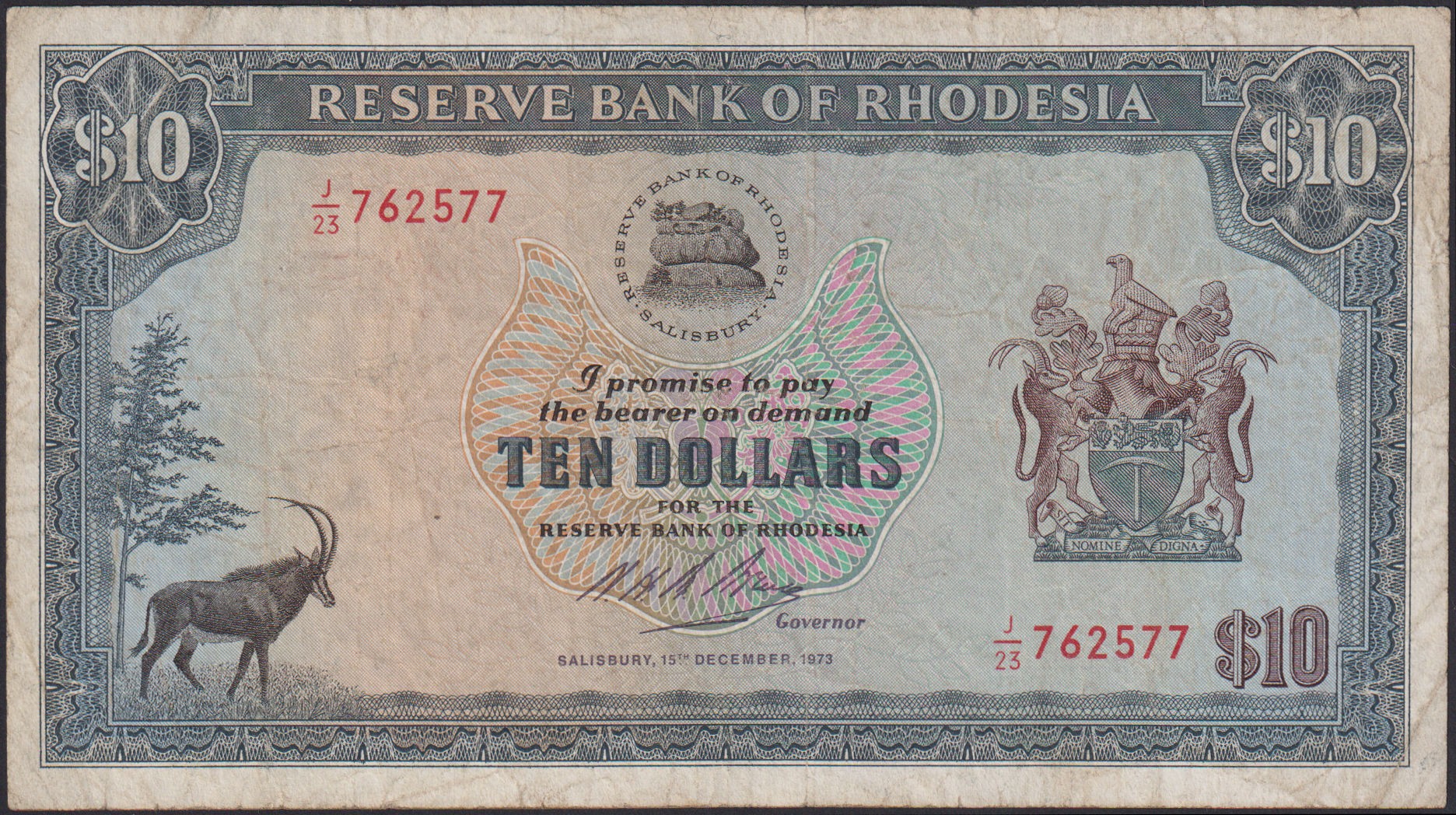 RHODESIA 10 Dollars 15.12.1973