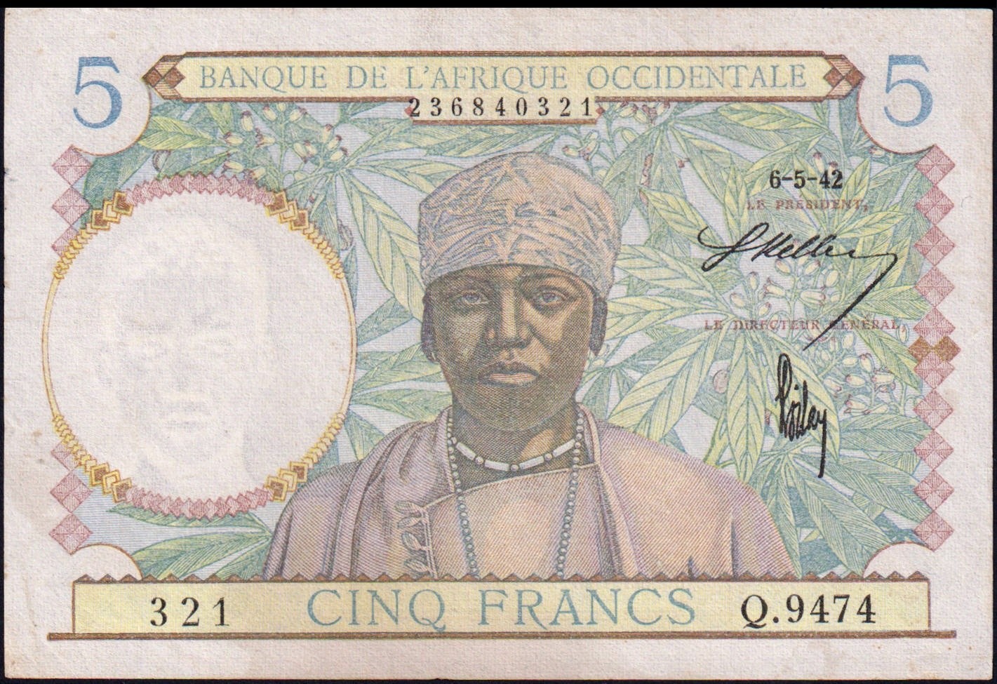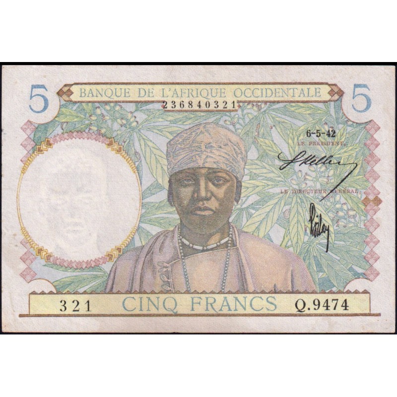 FRENCH WEST AFRICA 5 Francs 06.05.1942