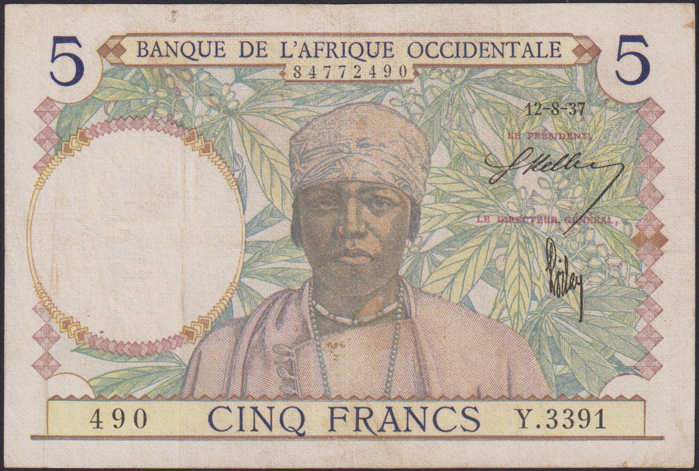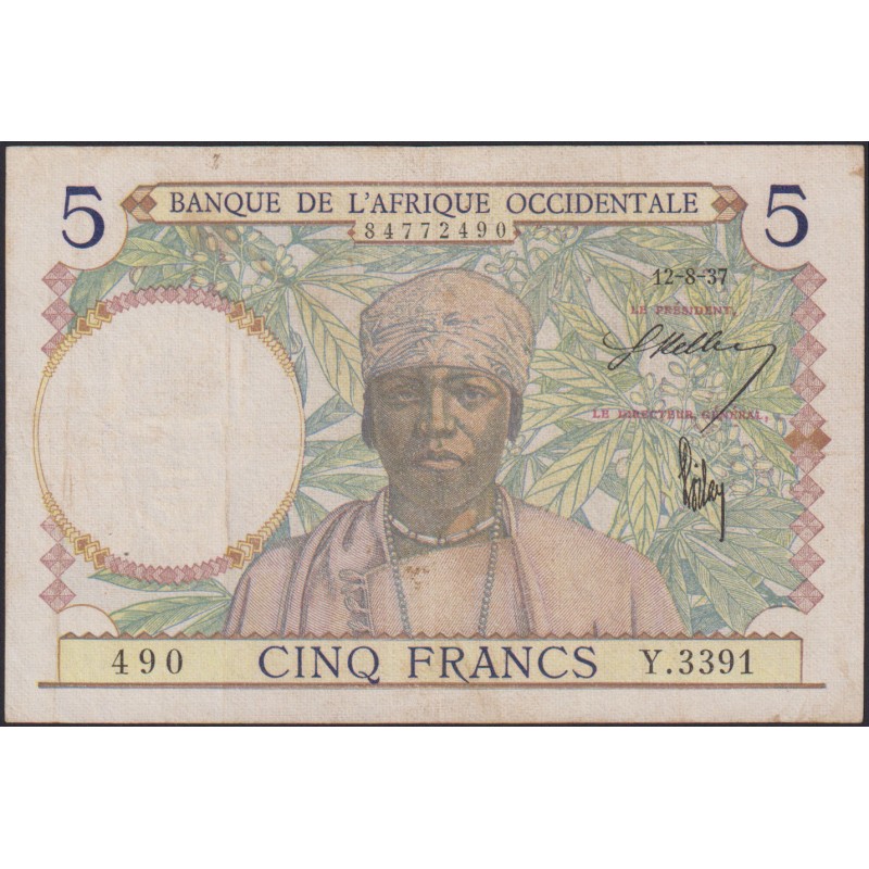 FRENCH WEST AFRICA 5 Francs 12.08.1937